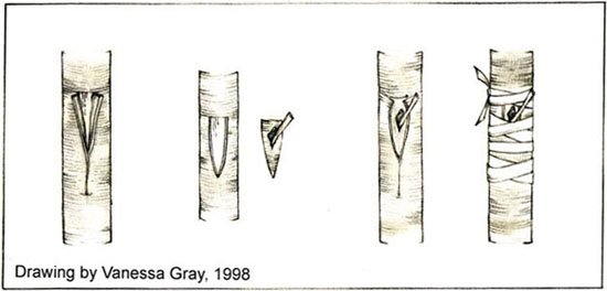 This visual guide shows the intricate cuts of the whip-and-tongue method, designed for maximum cambium contact and a strong, stable union.
